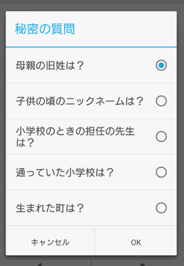 秘密の質問はいくつか候補があるので、本人でないとわからない、かつ、本人であれば必ず同一の答えがすぐ出るような質問を選択してください。