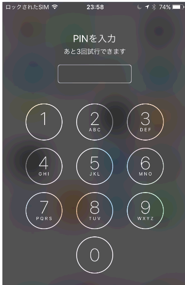 PINコードは3回まで間違えても平気なのですが、それ以上間違えるとSIMが使えないPINロックがかかります。