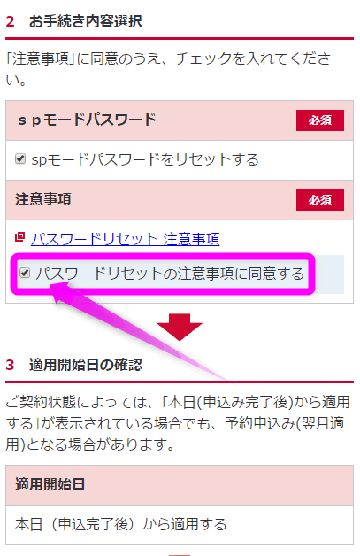 その下の「spモードパスワードをリセットする」にチェックを入れます。