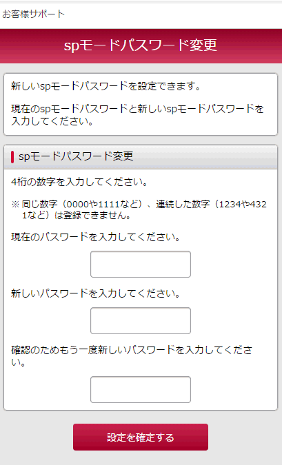 現在のspモードパスワードを入力し、新しいパスワードを2回入力。