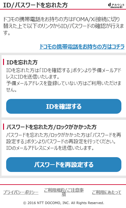 パソコン上からdアカウントのIDを調べたり、docomo以外のユーザーがdアカウントのIDを調べるには以下のようにします。