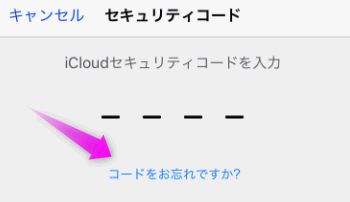 もし、iCloudセキュリティコード」が思い出せない!という人は、「コードをお忘れですか?」をタップすると…