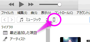 iTunesを起動し、iPhoneのアイコンをタップします。