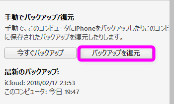なお、iCloudからの復元は、iCloudからの復元方法を参考にしてください。