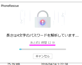 たった4桁のパスワードでも解析には1時間12分かかると表示されました。