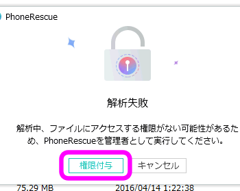 権限がないという注意が出た場合は、「権限付与」をクリックしてください。
