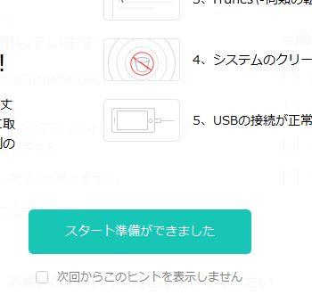 インストールが完了すると、PhoneRescue起動中はiTunesを起動しないでくれ、という警告が表示されるので「OK」をクリックします。