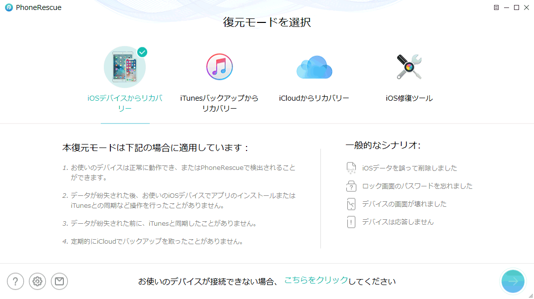 PhoneRescueはiPhone(iOSデータ復元をインストール)もアンドロイド(Androidデータ復元インストール)もどちらにも対応しているようです。