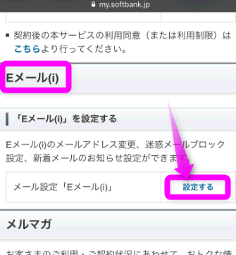 下の方にスクロールしていき、「Eメール(i)」にある「設定する」をタップします。