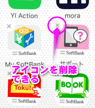 アイコンに「Softbank」という表示されているものは、ほぼ削除してしまった構いません。