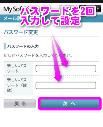 なので@i.sofbank.jpのパスワードが分からない場合は、新たにパスワードを設定します。