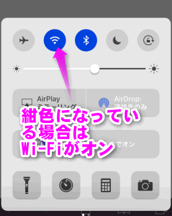 画面をしたから上にスワイプすると、コントロールパネルが表示されるので、Wi-Fiのアイコンが紺色になっている場合は、タップして灰色にしてWi-Fiをオフにします。