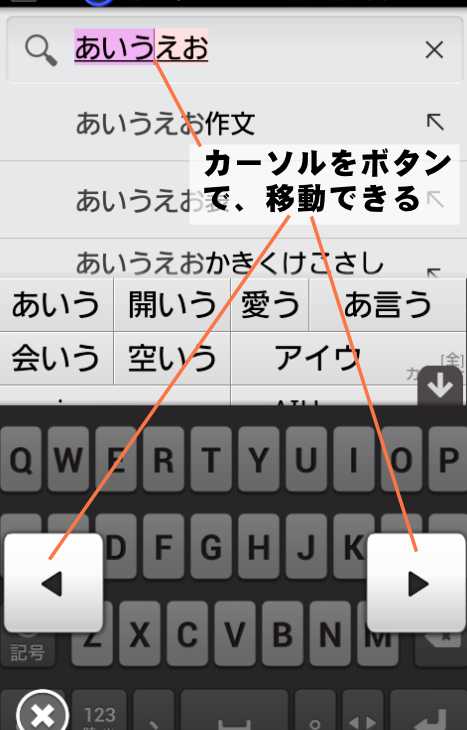 iPhoneでは、文節の区切りや文字を間違えた時にカーソルを変更するには、カーソルを変更したい部分の長押ししか出来ませんでしたが、Androidでは←と→のようなボタンがあって、文節の区切りの変更や誤った文字の修正が簡単!