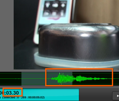この画像はSkypeで音楽を流した時の波形。LINEの時に比べ、波形が連続して続いています。思うに、Skype同士の場合はあまりノイズなど関係なしに、マイクに入ってきた音をそのまま相手に届けているのかもしれません。