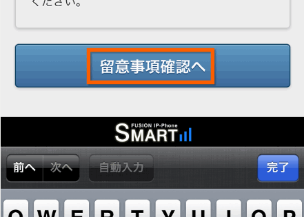 注意事項などが表示されるので、一読したら「申し込みフォームへ」をタップします。