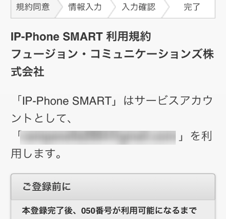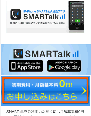 SMARTalkを使うには、IP電話サービスIP-Phone SMARTに申し込む必要があります。アプリ上からは申し込むことは出来ないので、こちらのページから申し込みます。