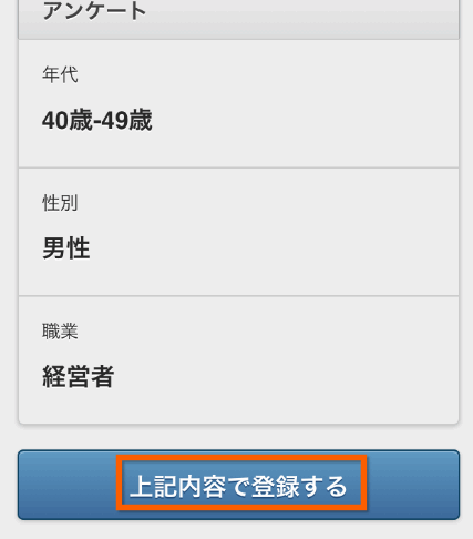 ページ下の方に「上記内容で登録する」というボタンがあるので、タップします。