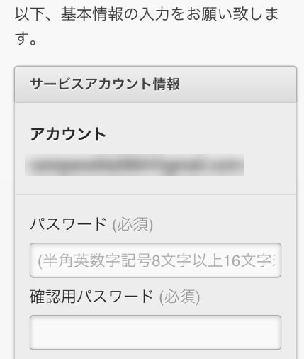 ログイン用アカウントはメールアドレスなので、パスワードを決定し、2回入力します。