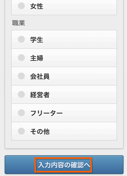 性別・職業にチェックを入れ、「入力内容を確認へ」をタップします。