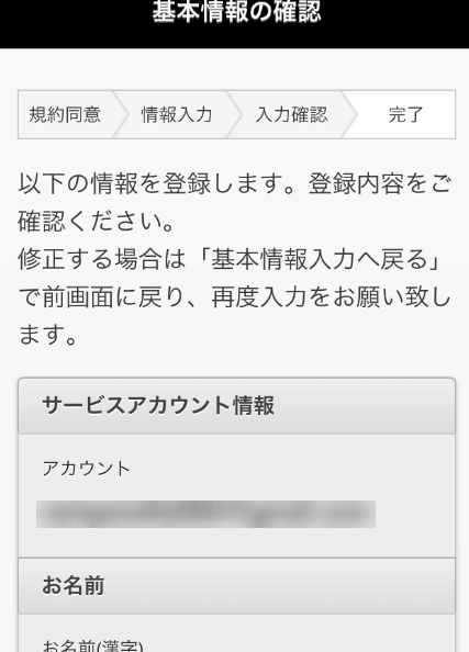 今まで入力した情報が表示されるので、間違いがないか確認します。
