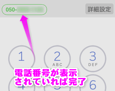 このように左上に、取得した電話番号が表示されていれば完了です。