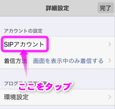 ダイアルの画面の右上にある「詳細設定」をタップし、「SIPアカウント」をタップすると、新たにアカウントを追加することが出来るんです。
