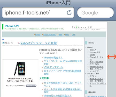 iPhone閲覧時、横幅の指定がきちんとなされていないのか微拡大されて右端がハミ出ている(縮小して合わせ直すことは可能)サイトに出くわすことが多くて、不具合か何かかと思って検索してみたらこの記事を見つけました。