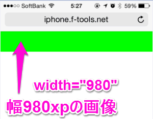 こちらは、画像の幅を980ピクセルに指定して作成したページをiPhoneで表示したものです。