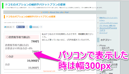 パソコンで表示した時は、IMGタグで指定した横幅で表示させます。この画像で言うと、300pxですね。