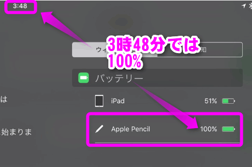 まずは使っていない状態でApple Pencilのバッテリーがどれくらい減るか調べてみました。