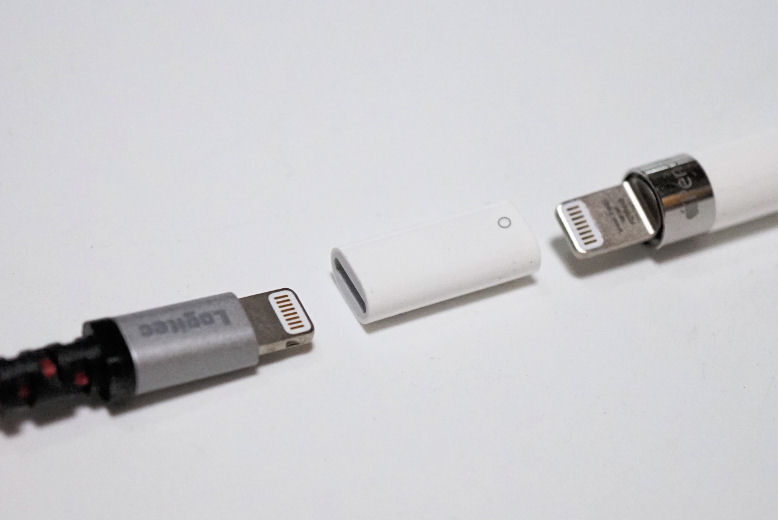 また、Apple Pencilにはライトニングケーブル用の充電アダプターもついてくるので、この充電アダプターを使えば、Lightningケーブルを刺して充電することも出来ます。