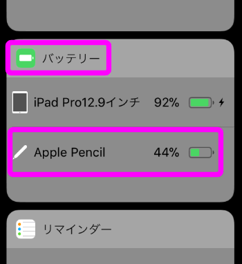 「バッテリー」という項目にiPadのバッテリー残量と、Apple Pencilのバッテリーが表示されました。