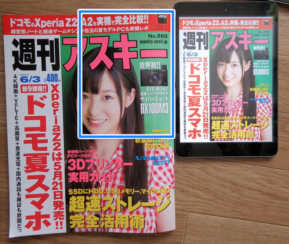 左が雑誌版の週刊アスキー。右がiPad Retinaの電子書籍版の週刊アスキーです。