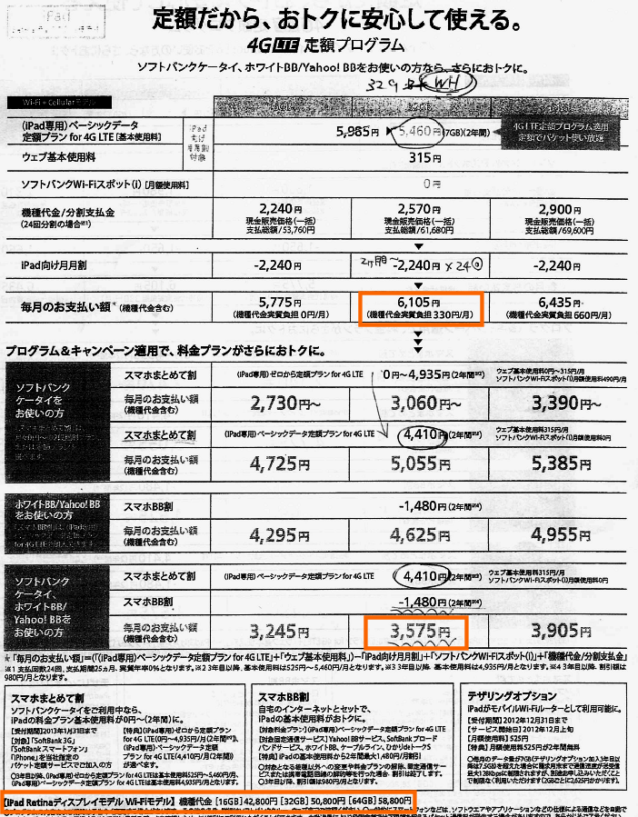 iPad Retinaにしましたが、何故悩んだかというと、現在SoftBankでは、