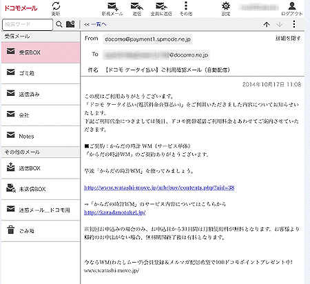 ドコモメールは、GmailやYahoo!メールのように、ブラウザ上からも使用できます。