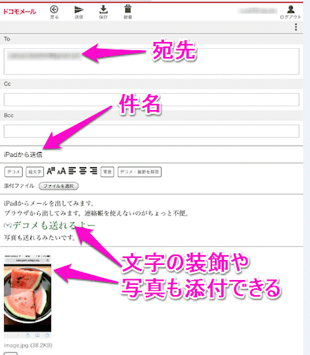 デコメ絵文字や文字の装飾などもできるし、写真を添付することも可能です。