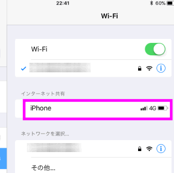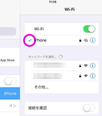 設定のWi-Fiを開き、iPhoneのテザリングを解除しておいてください。