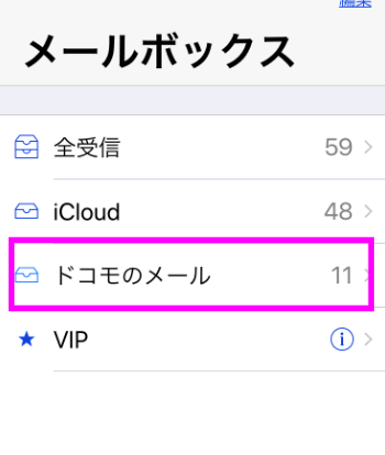 メールアプリを開き、メールボックスを見てみるとドコモメールが追加されていました。