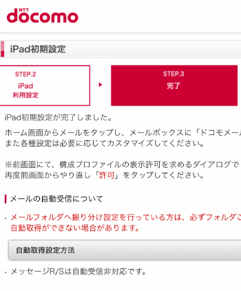 「ドコモメールセットアップ(iPad初期設定)」という部分をタップします。