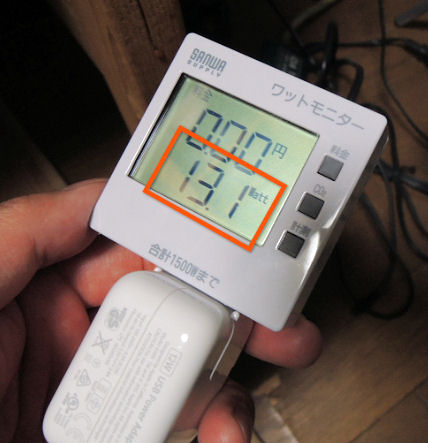 iPadに付属してきた充電器12W USB電源アダプタで充電して、電力を計測したところなんと13.1Wを記録。