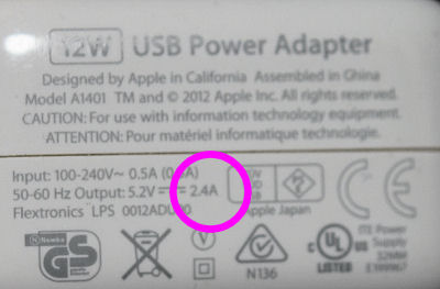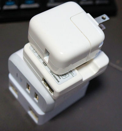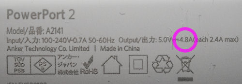 2アンペアで十分・・・の気がしますが、残念ながら2台同時に充電しようとすると、互いが充電のオンオフを繰り返してしまい、充電できません。iPad以外でも2台同時に充電しいようとすると、充電のオンオフが繰り返されてうまく充電できませんでした。