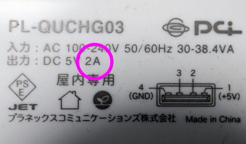 こちらはアンペア数が桁違い。4.8アンペアのようです。