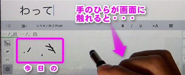 iPad Proでも、手のひらが乗っているとうまく書けない時があります。