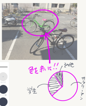 鉛筆風やサインペン風の線種が選択できますが、線の太さは調節できません。