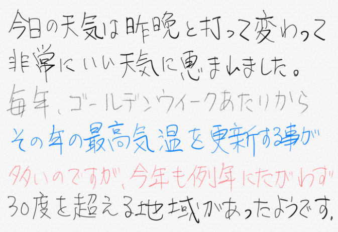 続いて紙に書いた手書きの文章とiPad Proの手書きを比較してみました。