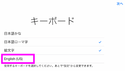 また半角英数字を入力するので、「English(US)」もチェックを入れておいてください。