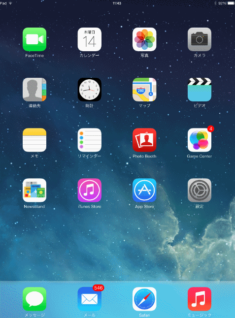 iPad mini Retinaでは、アプリのアイコンは4x5の20個を1つの画面に表示できるようです(それ以外に頻繁に使う4つを画面下に表示できる)。