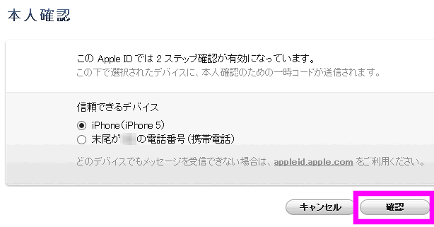 2ステップ確認を求められる場面としては、認証していない、たとえばパソコンのiTunesでアプリを購入しようとすると、2ステップ確認を求められます。