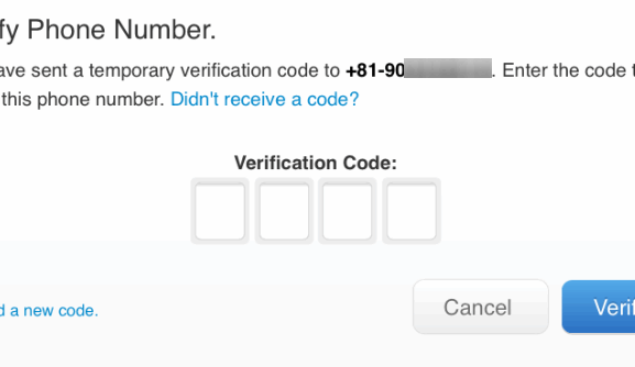 画面に4桁の認証コード(Verification Code(一時確認コード)」が表示されるので、このコードを覚えておきます。