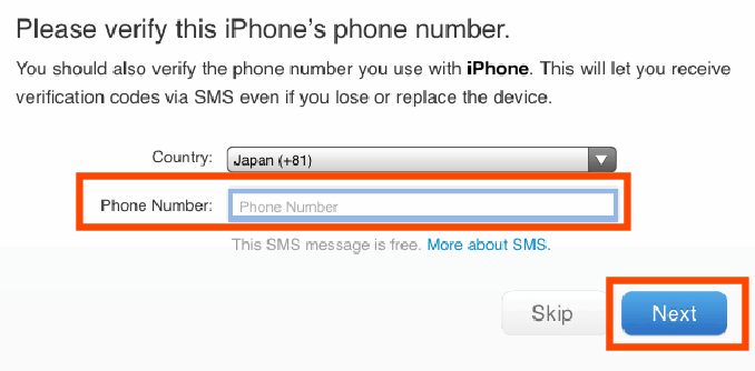 「Country」が「Japan(+81)」になっていることを確認し、iPhoneの電話番号を入力します。